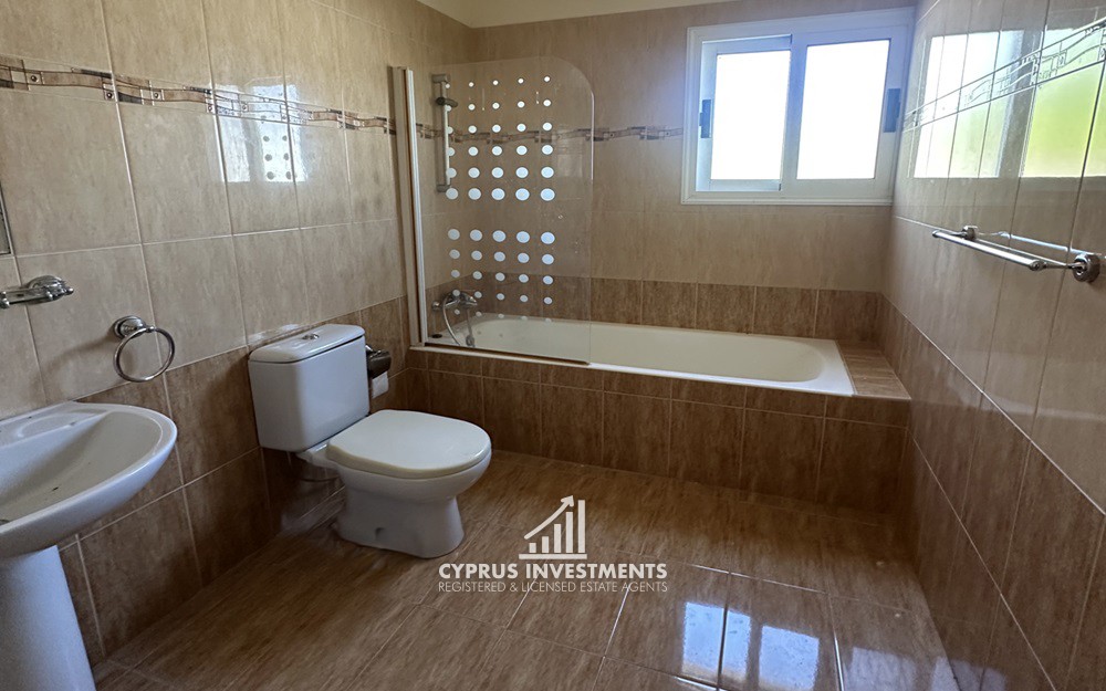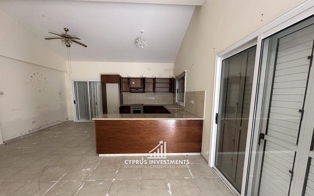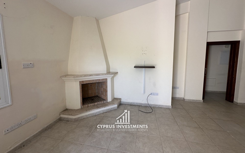 The property has an area of 120sqm. It consists of an open-plan kitchen and living/dining room with a fireplace, three bedrooms (one of which en-suite and walk-in closet) and a bathroom. Externally there is spacious yard and a private swimming pool.