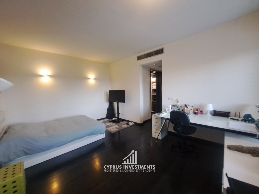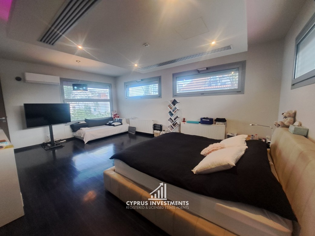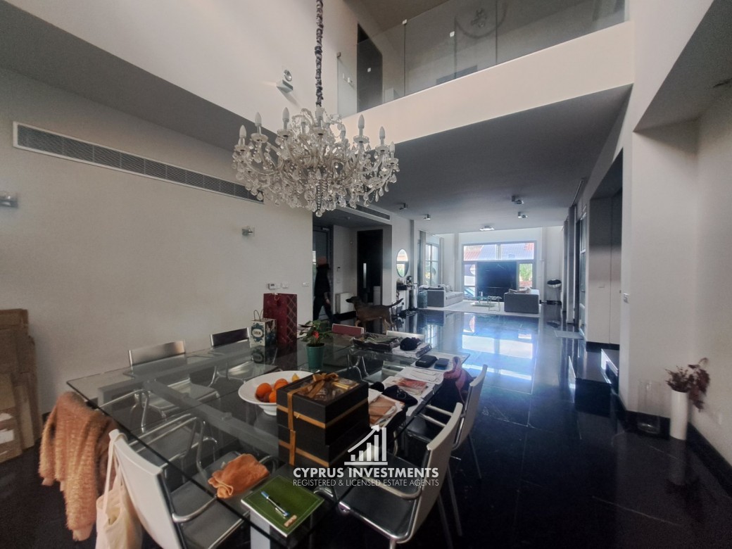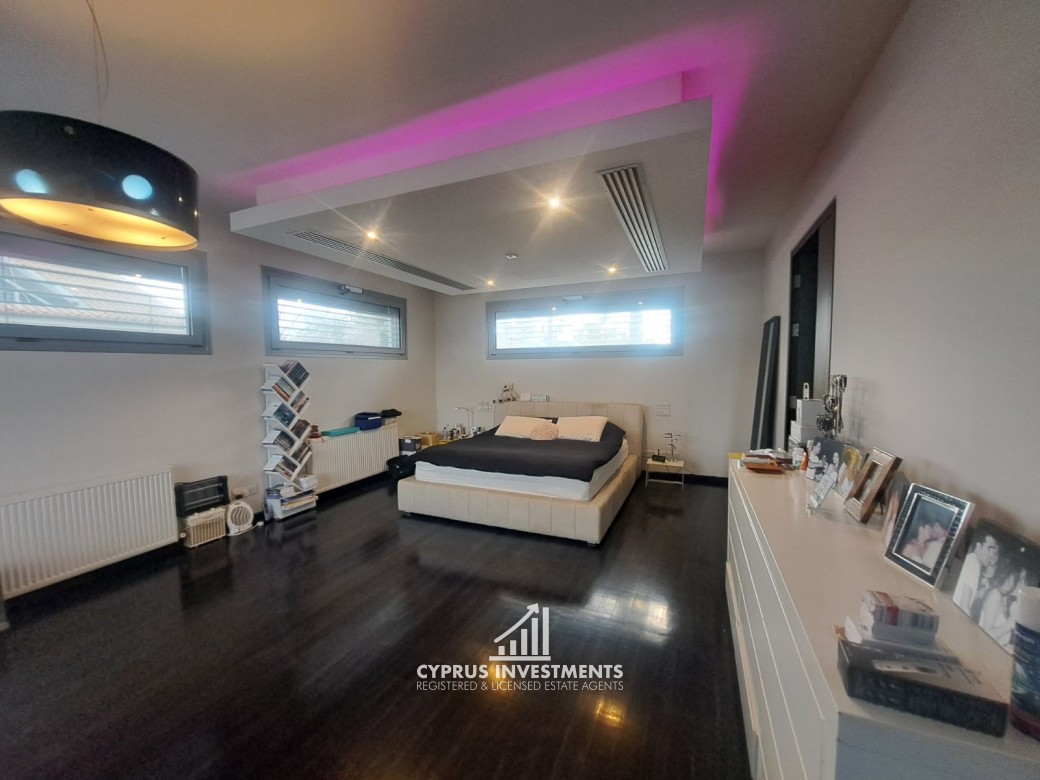 Additional features include a server room with a safety box, an office room, a cinema room, central heating, eight water closets, and a maid's condo complete with a bathroom and kitchen. The property is enhanced with thermo-insulated walls and windows, electric shutters, a soft water sanitation system throughout, a soundproof hydraulic lift, and a roof garden.